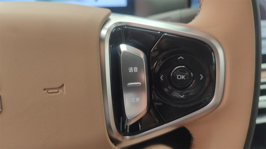 方向盘的盘幅中等略偏大,环身的皮料手感很好,两侧的操作区域使用的是一体化的黑色烤漆面板按键,兼顾了手感和成本,并且不容易沾染指纹。另外辅助驾驶在方向盘上有单独的开关键,不需要与怀挡拨杆兼用,这点要注意。