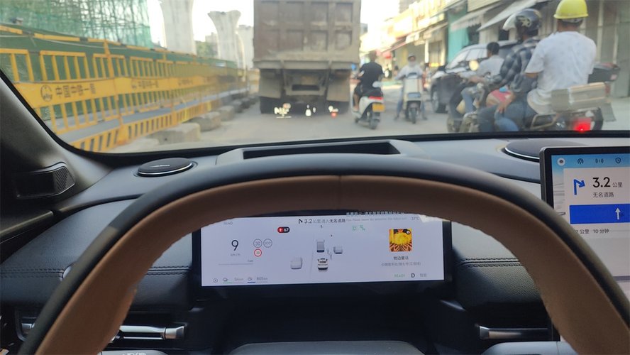 由于试驾车没有“千里浩瀚”的使用权限,所以在试车的过程里简单体验了一下LCC。在拥堵的路况下,系统对于跟车速度的控制还是很稳的,而且能做到自动停车、起步,在基建良好的市区行驶时能减缓不少压力。不过受限于残破的路面,地上的标线并不算清晰,系统丢失标线之后就会重新将两侧的围栏、水泥路沿石作为锚定物,导致车子经常“自作主张”地偏向一边,让人捏了一把汗。我觉得跟车时的策略还可以再优化一下。