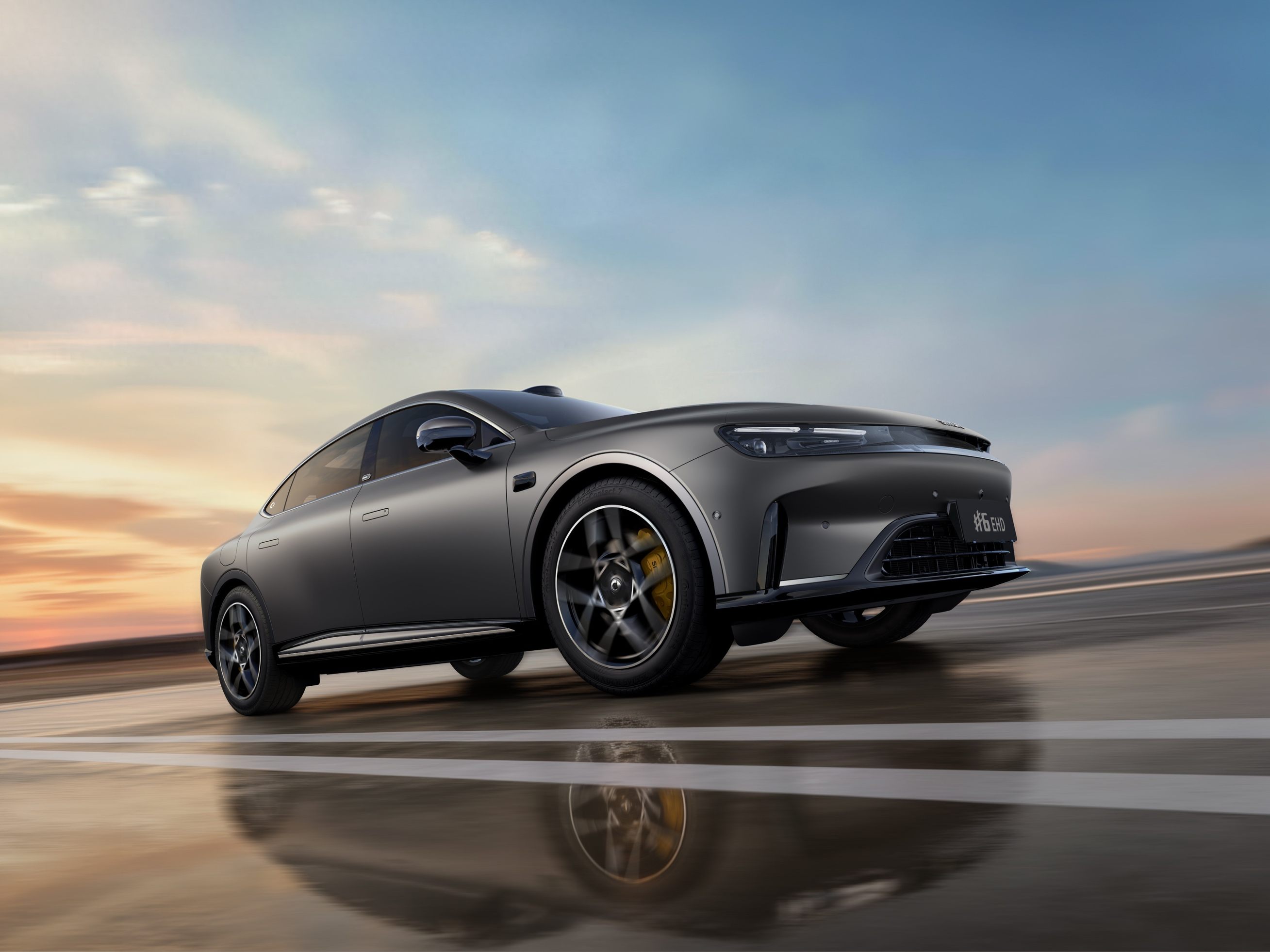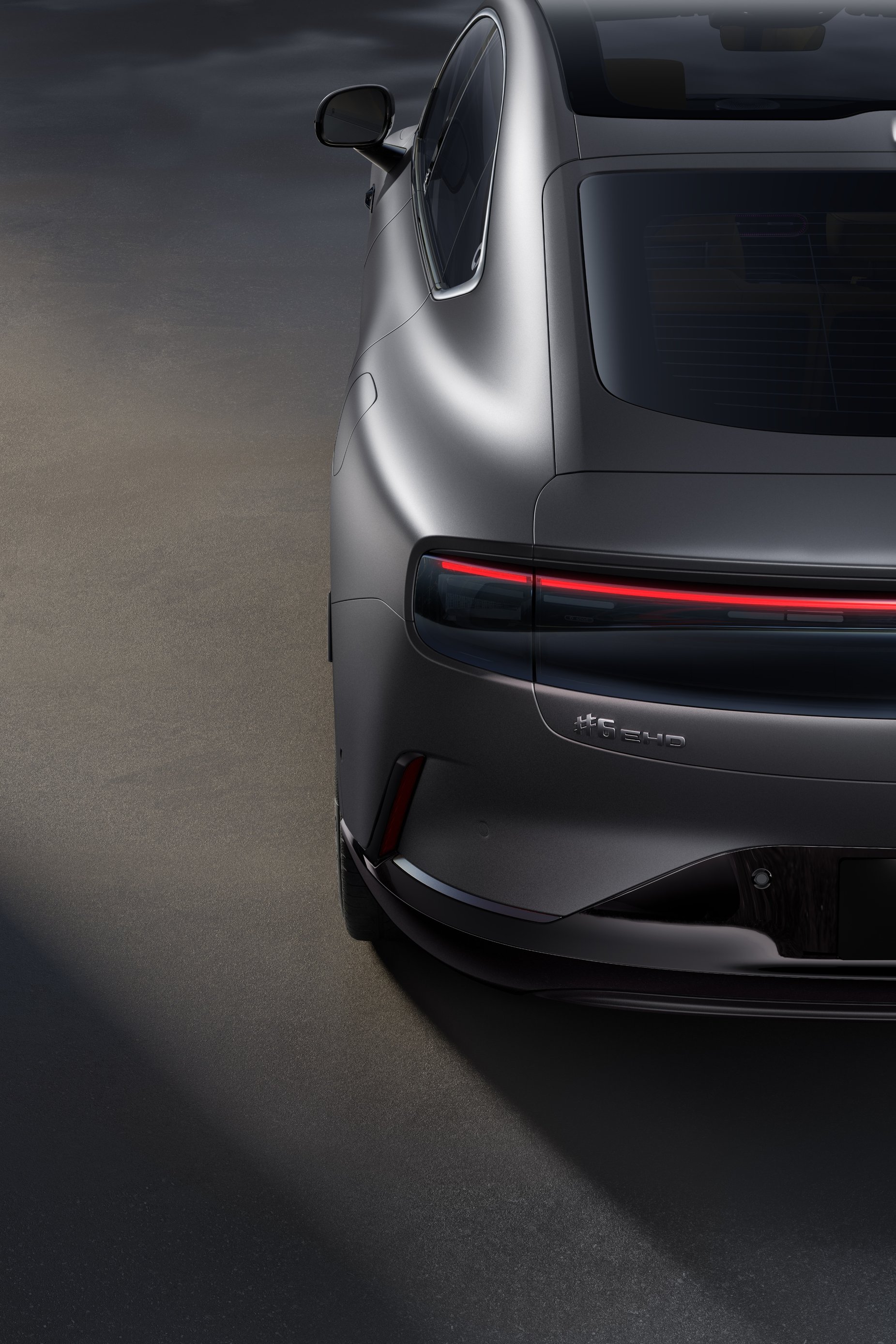 4、 官图中尤其强调了尾部,有一个可以升降的尾翼,再加上CG图当中的拉花造型,显得运动感十足。整体设计风格给人的感觉——这是要来和小米SU7掰手腕的。