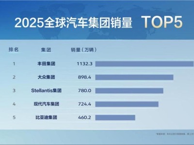 比亚迪2025年销量跻身全球前五,创中国车企集团历史最高纪录