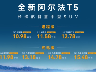 左揽元境智行 右享神擎增程,全新阿尔法T5上市10.98万起