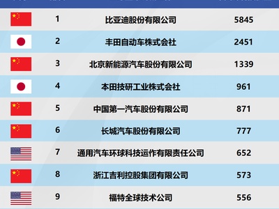 比亚迪包揽三榜第一,中国车企集体改写新能源技术竞争格局
