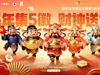 比亚迪再宠粉,春节集齐五徽就能瓜分1亿积分