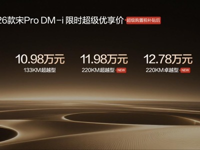 限时11.98万起,2026款宋Pro DM-i220km长续航版上市