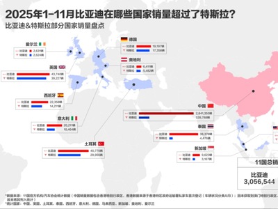 比亚迪前十一月全球多市场夺冠,多国销量超越特斯拉