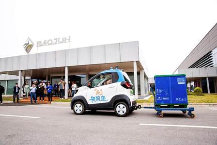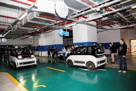 在智慧生活/智慧新时代展厅部分,新宝骏E300&E300Plus星际未来版车型,搭载了最新的遥控泊车功能(RPA),用户人在车外,通过手机端APP控制车辆,即可在工作车速0-5km/h时实现一键泊入、一键泊出以及手动遥控。另外,无人物流车、无人驾驶出租车、无人叉车和无人清扫车,展示了无人驾驶技术的应用。