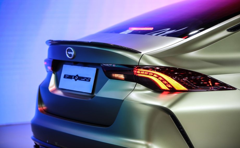 基于广汽传祺在“光影雕塑”造型语言1.0至3.0的探索,EMPOW55采用了“光塑曲面”全新设计语言,完成了造型上更加锋芒毕露的设计进化。极低的视觉重心、经过精确计算的加速度线条、高挑健硕的尾部,以及宽厚有力的车肩,都赋予了EMPOW55更充分的运动气质。同时EMPOW55还传承了ENO.146和ENPULSE“刃影折线”主题,极大强化了传祺的品牌基因。而全LED锋芒大灯、展翼式魅影尾灯,都是“光塑”设计语言的延伸,使EMPOW55在黑夜中呈现独一无二的视觉符号。