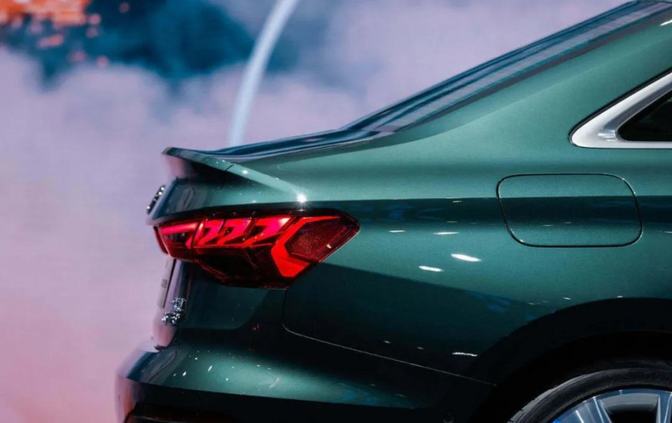 车身侧面线条与老款相比并没有太大的改变,但不得不提本次展车的墨绿色车漆,给本车颜值带来了极大的加分,在这个角度下,车身侧面光影细节堪称满分,车身线条流畅且富有张力,营造出极佳的运动感。如果仔细观察后窗和C柱部分,便可知全新A3L的“L”就来自于此部位。得益于此处的加长,新款A3L相较老款多出了51mm的轴距,整体视觉效果更加修长。