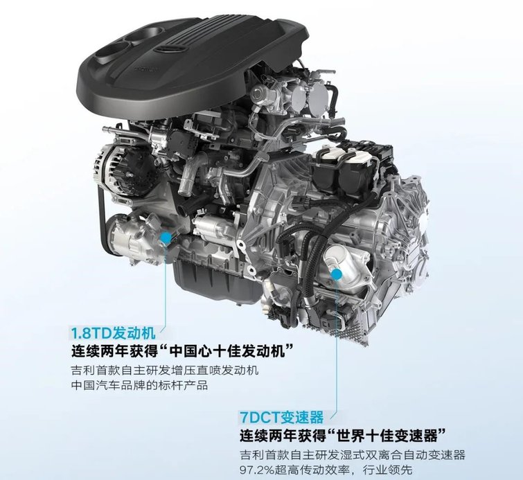 同时,1.8TD发动机是由吉利汽车完全自主研发,也是吉利首款增压直喷发动机,并于2015年、2016年连续两年获得“中国心十佳发动机”奖项。