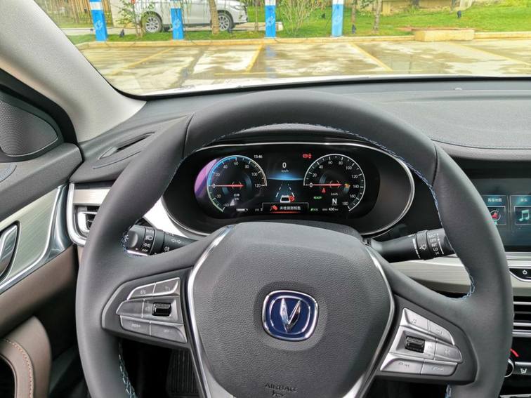 内饰方面,逸动EV460同样延续燃油版车型的设计风格,在配色方面采用黑色与棕色的配色,中控则采用大面积的软性材质包裹,触感极佳,三辐式方向盘采用真皮面料包裹,握感还不错,搭配全液晶仪表盘,并拥有三种主题风格切换,显示界面会随着驾驶模式的变化而改变,科技感十足。值得一提的是,驾驶者只需在10.25英寸中控大屏的导航界面上通过三指左划的操作便可将导航画面同步到仪表盘上。