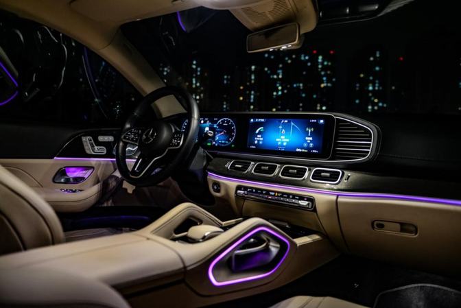 似乎整个气氛都不一样了,闷骚的紫色非常适合潜藏的科技与智能,让科技冰冷的静谧有了几分人气的晃动。联通式的仪表盘与中控屏幕已经满大街了,然而奔驰是不会让我们失望的,期待下一块屏幕,make 屏幕 great again!