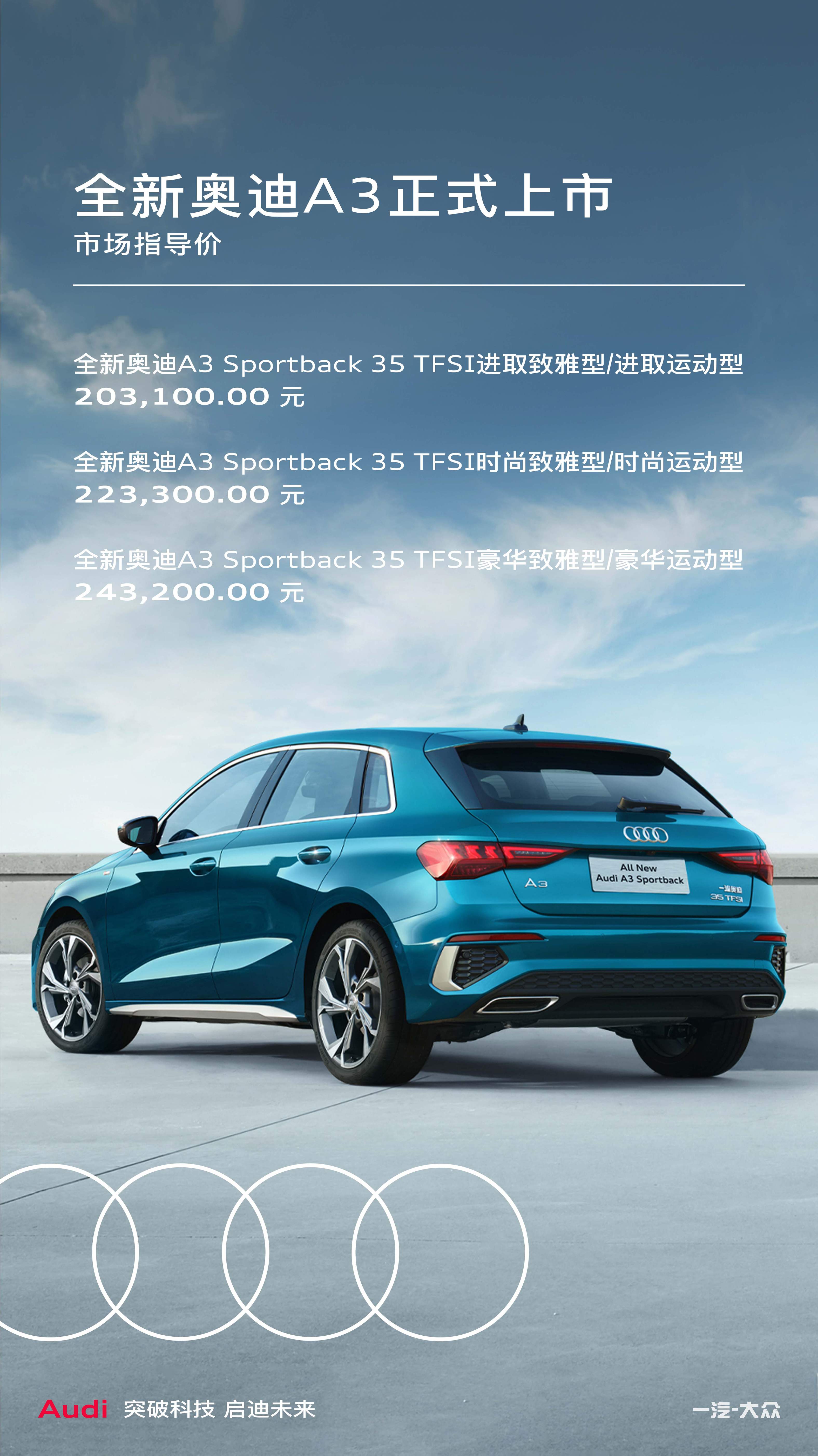 全新奥迪A3上市售价20.31万元起,你愿意为它买单吗?