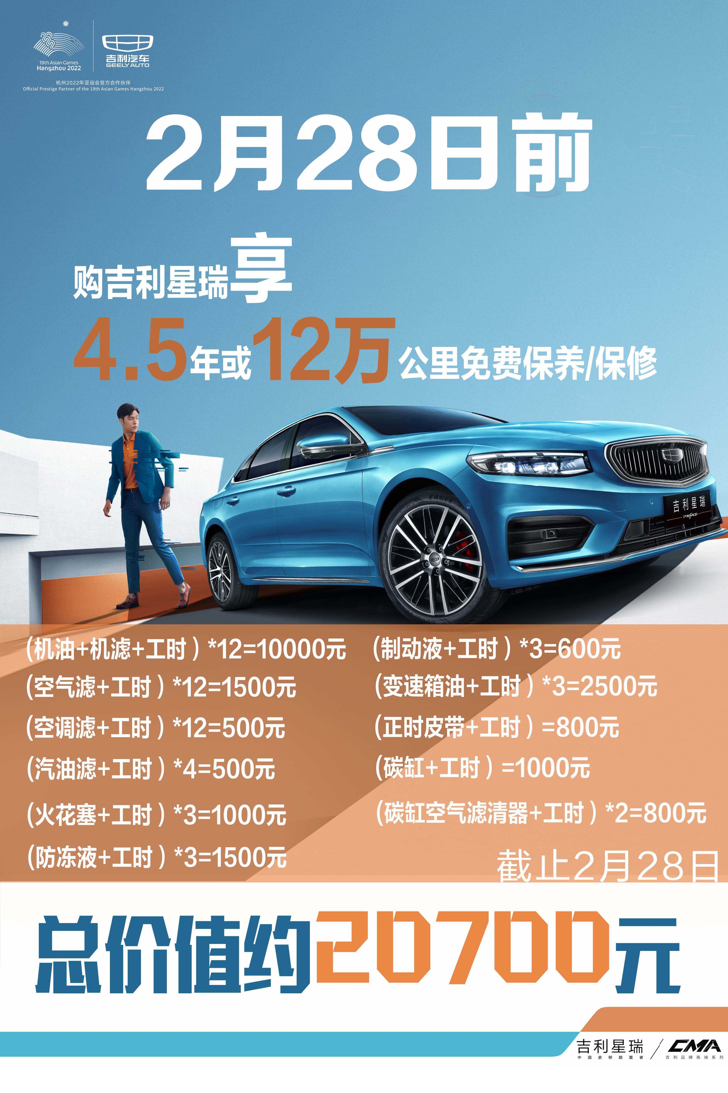 2月28日前购买吉利星瑞还可享受