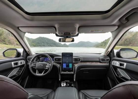 相比之下探险者的内饰在设计感和材料方面略逊一筹,中控台使用的软性材料而并非皮质,不过12.8英寸竖置中控液晶屏拉高了整车的格调。