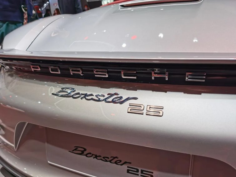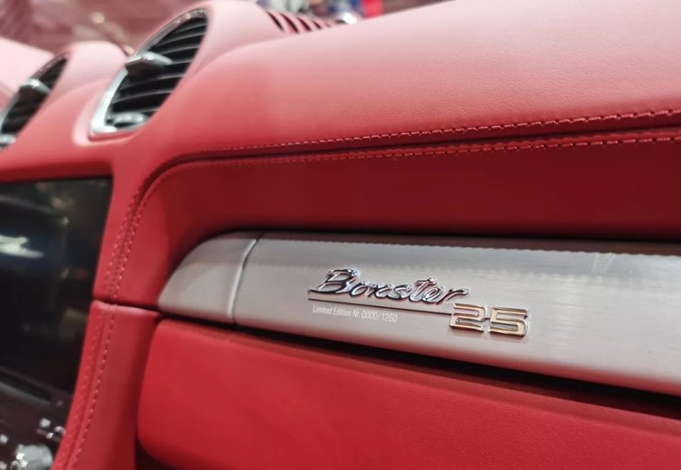 在保时捷的展位还有台车也值得一提,它就是718 Boxster 25周年版,整体外观并无太大改动,采用了特殊造型的金色五辐式轮毂,并在尾标处贴上“25”字样的铭牌,而从内饰副驾驶座前面的铭牌可以看出,新车也是采用限量的形式发售。