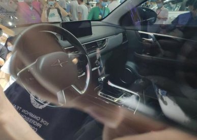 透过车窗看车内,对称式的中控台造型比较简约,悬浮式中控屏最为抢眼,空调出风口的下方保留了实体旋钮和按键。新车采用机械式换挡机构,三幅圆形多功能方向盘也也是稳重的风格,哑光镀铬饰条看提升了精致感。