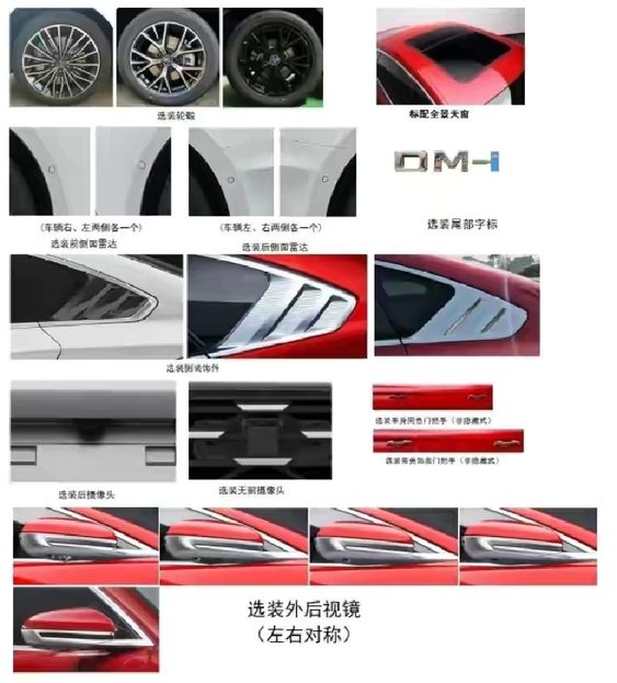 从申报图中不难看出,汉DM-i在外观设计上依旧继承了汉DM-p的整体设计,并没有太大改动,但在尾部也新增了DM-i的专属字母样式,以彰显身份。就外观设计而言,汉DM-i在中大型轿车市场颜值依旧能打。