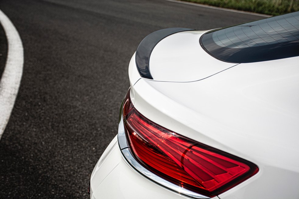最后,留给内外设计。整体造型不变,尺寸也没变,在车身外观增加了不少点缀。像取代涟漪式中网的鱼鳞一体式中网、前雾灯的位置用电光绿的魔爪装饰代替、侧裙的装饰条用了电光绿+CMA字样的元素,呼应车头。车尾调整也不多,小鸭尾、四出排气、黑色扩散器,整体还是强调运动属性。