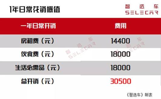 鉴于朋友是单身汪,平时也比较宅,就其自己而言,在房租、伙食费以及其他杂费算在内,保守的看,他1年的日常花销为50400元。 最后,我们来总的盘一下,月薪8000元,1年算上年终奖大致为11万元,减去日常花销30500元,养车53161元,剩余6439元,可以说是勉强养得起。(注:这只是个例,且是大致花销费用。)