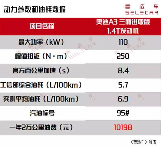 在和朋友的交谈中,他大概和我聊了一下它的座驾奥迪A3的动态驾驶感受:这款车提速相当的快,网友吐槽的双离合顿挫问题,他没有明显的感觉到。该车的悬架是真的很整、很硬,方向盘略有虚位、略沉。油耗他倒是很满意,日常城市行驶大概7个油左右。整体算下来,1年加油花费是10198元。