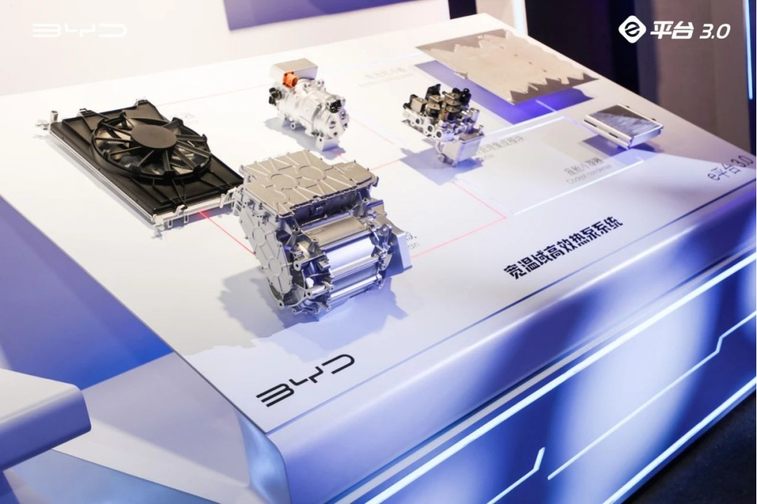 而比亚迪e平台3.0首创了动力电池直冷直热技术,可将热效率最大提升20%,并降低能量损耗,其宽温域高效热泵系统更是可以充分利用环境、动力总成,甚至乘员舱和动力电池的余热,来维持电池的工作环境,从而让冬季续航里程最大提升20%。
