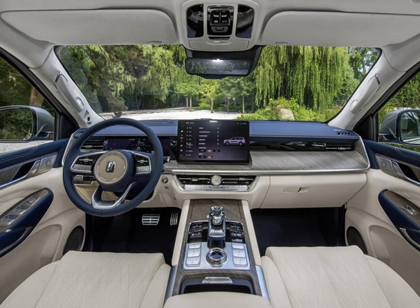 在内饰上,坦克500的内饰设计语言采用了“壮丽山河”的设计灵感,豪华版采用了深棕色的内饰配色,配备了三幅式多功能方向盘、12.3寸全液晶仪表、14.6寸中控台液晶屏、水晶档把时下非常主流的科技配置。