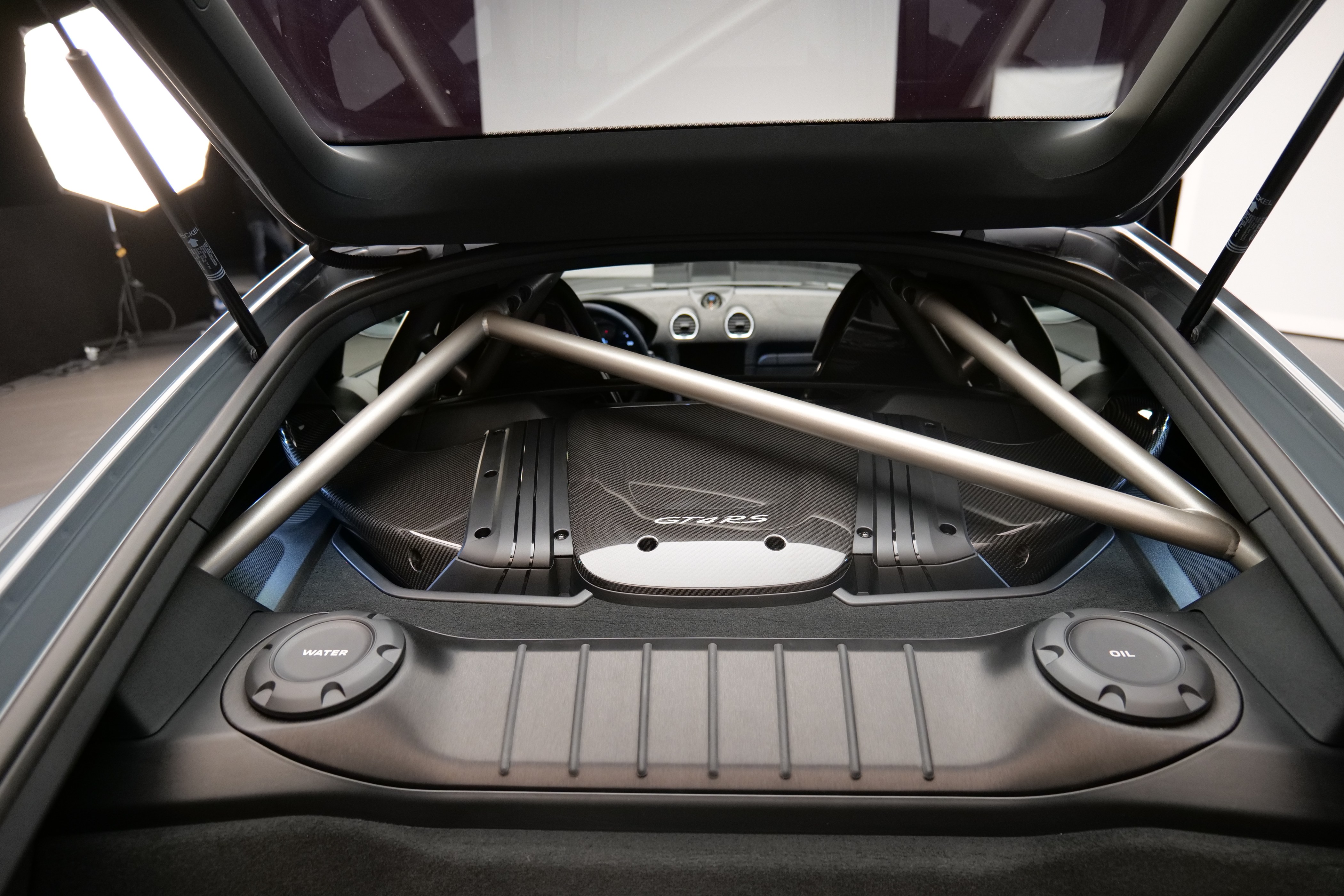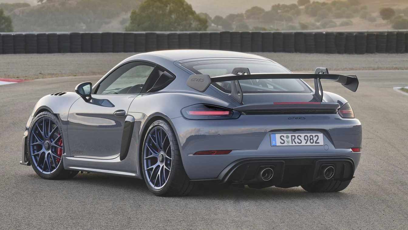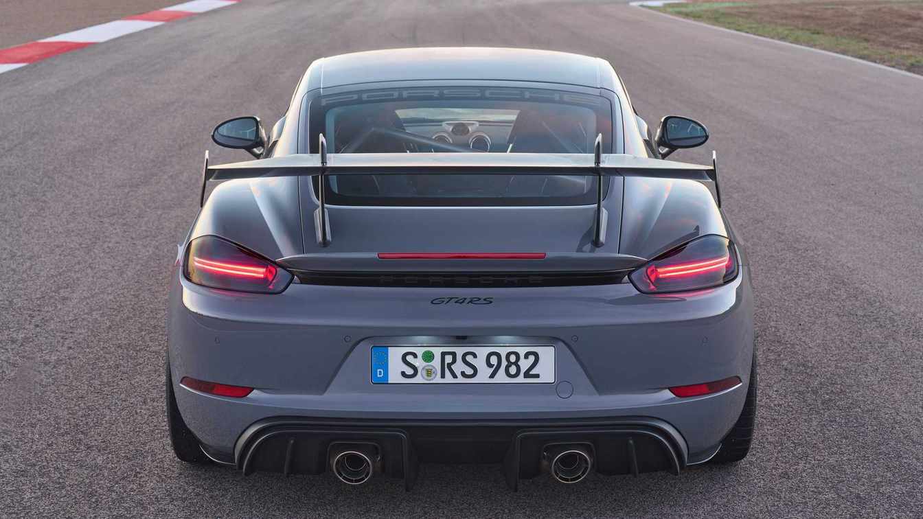 尾部造型方面,大尺寸的尾翼很有辨识度,而且侧面也印有“GT4 RS字样;尾灯也采用熏黑式设计,造型和普通版车型基本上保持一致。下包围部分的造型变动同样不大,排气管采用了双边共两出布局。