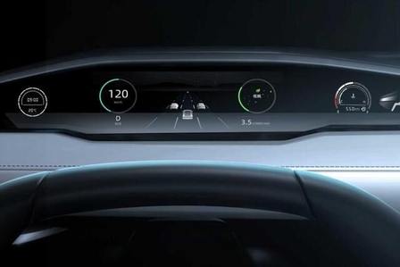 中控屏所在视角区域与三联屏仪表的视角区域相邻接,同时上下平底的方向盘更小巧,仪表观察高度足以可以媲美HUD抬显,后方还带有凸显金属质感的换挡拨片。