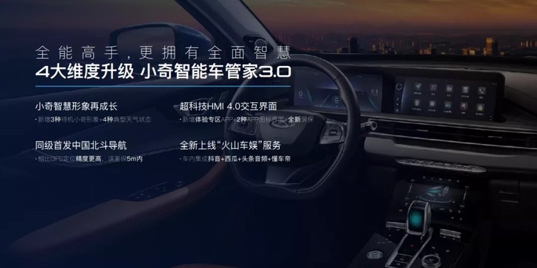 该系统智慧形象再焕新,用户可以在3种待机小奇形象中自定义选择,更加个性有趣。用户还可以通过全新上线的“火山车娱”板块,在车内玩转抖音、西瓜、头条音频、懂车帝等热门社交软件,手机互通,尽享轻松娱乐体验。值得一提的是,新车在同级车内首发使用中国北斗导航,相比GPS区域定位精度更强,一路贴心指引。