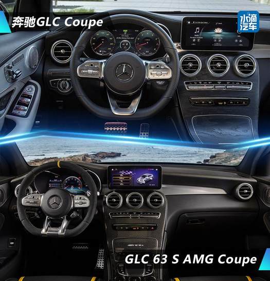 相比普通版GLC的外观,笔者更加喜欢另外三款车的造型设计。奔驰GLC Coupe、奔驰GLC63 S AMG Coupe和奔驰GLC 63 S AMG三款车,与普通版本GLC车头部分的设计不同之处在于采用了梯形进气格栅设计,梯形的两个边与大灯内侧相平行。