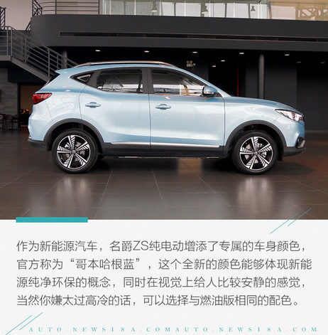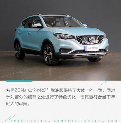 从外观上来看,名爵ZS纯电动大体上保留了燃油版的造型设计,要说最为显著的变化则是前脸的造型有了新的优化,全新的设计要较燃油版视觉效果更出色,同时出于对新能源元素的设想和设计,本次名爵ZS纯电动的车身主打色为哥本哈根蓝,体现了新能源纯粹洁净的理念,又将互联网汽车的概念同步展现。