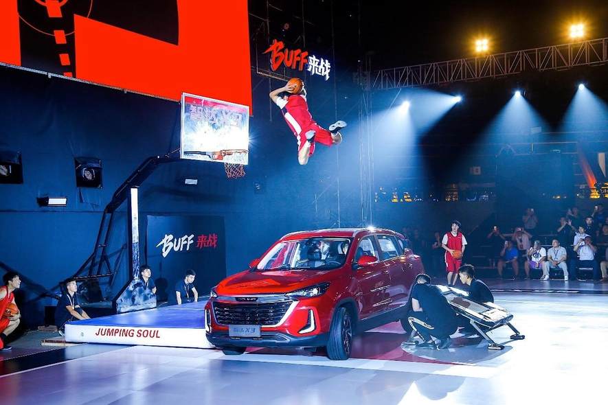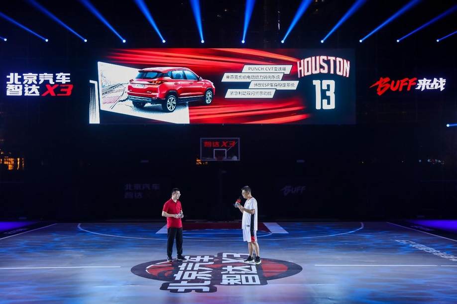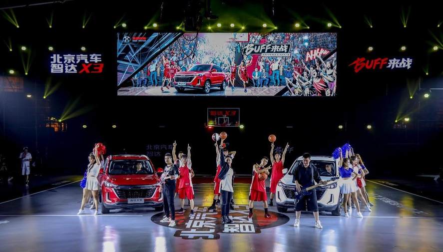 在大连星海会展中心,北京汽车彻底颠覆传统,把智达X3的上市发布会变成了BUFF来战篮球之夜活动,北京汽车股份有限公司副总裁吴周涛和著名篮球解说员苏群站到篮球场上解说产品,充满热情的年轻人挥舞起篮球高呼“BUFF来战”,再加上灌篮高手的BGM,整个现场如同燃爆青春的篮球Party。