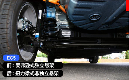 前麦弗逊后扭力梁的结构更有利于节省空间,也便于车底置放电池组。