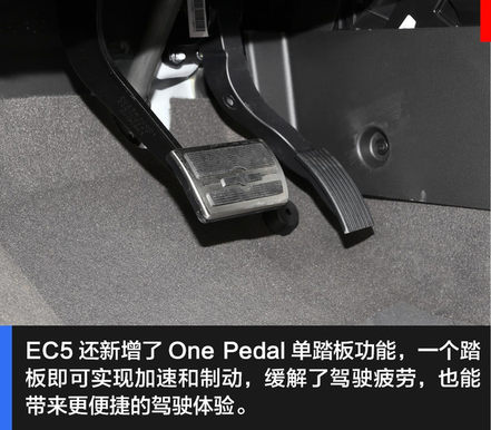 ec5还配备了能量回收系统,系统设置了三个等级可调,当你右脚离开“油门”踏板后,。