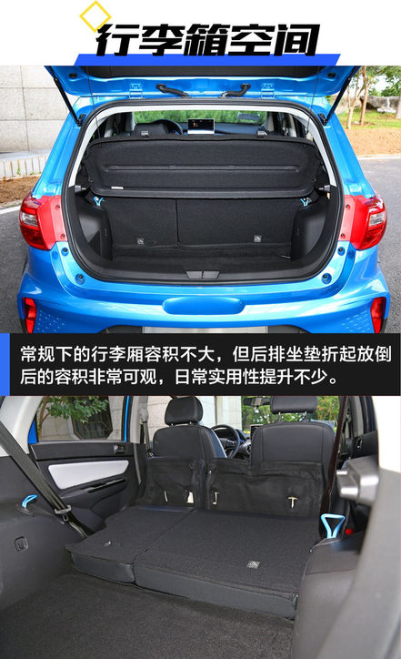ec5的都算不上突出,但其内部空间经过重新优化,不论是乘坐空间还是储物空间都不落于人后。可翻折的后排座椅,必要时还能变身“装载小能手”。
