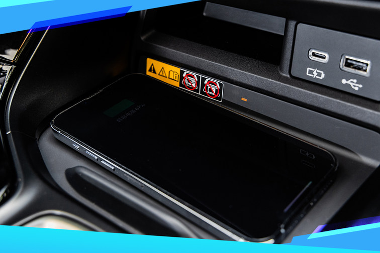 而且,在中控台下方,有一块无线充电板,而在这块充电板的下方,还有一个小隔层。这样的设计体现出了日式收纳特有的“空间魔术”。