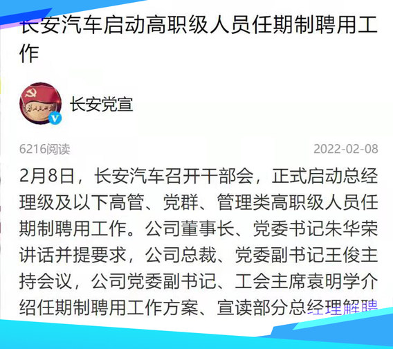 重磅丨全部解聘,长安汽车启动高级职员重新聘用