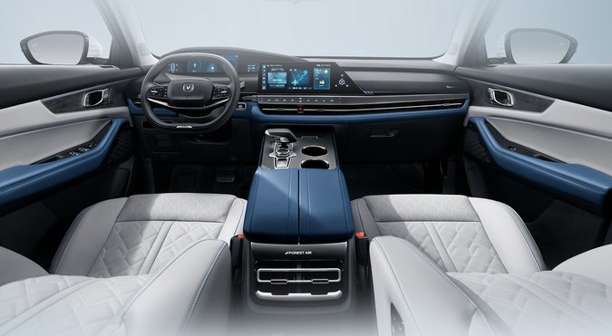 内饰方面,长安UNI-K iDD同样采用了比较靠前的液晶仪表的设计,中央也是采用了悬浮式的中控屏幕。方向盘是上下同为平底的双辐式设计,这点与普通版的UNI-K 是不同的。