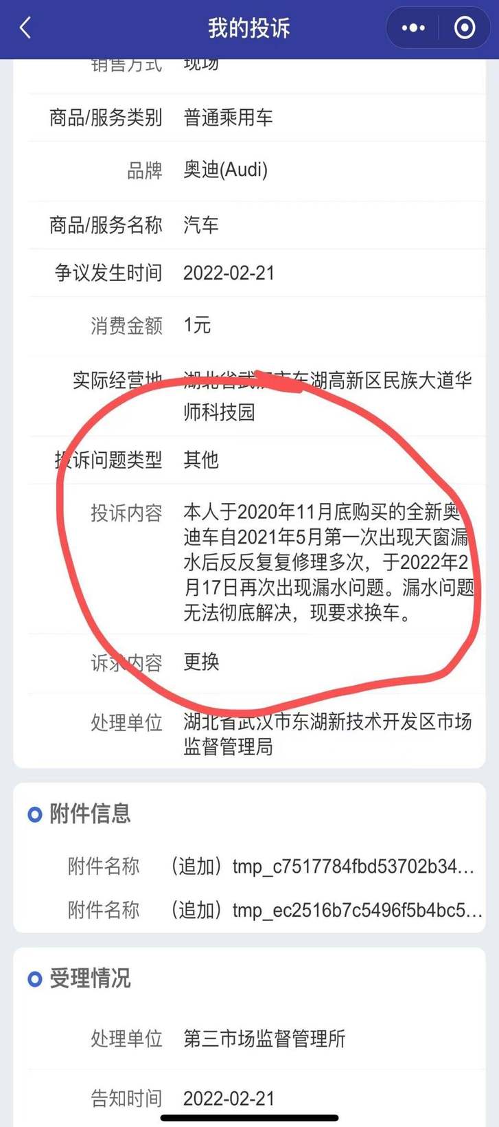 当然不,2月下旬,本是虎力全开,展望新一年的时候。田女士的奥迪Q3再次出现天窗漏水的毛病。这次,田女士彻底恼火了。