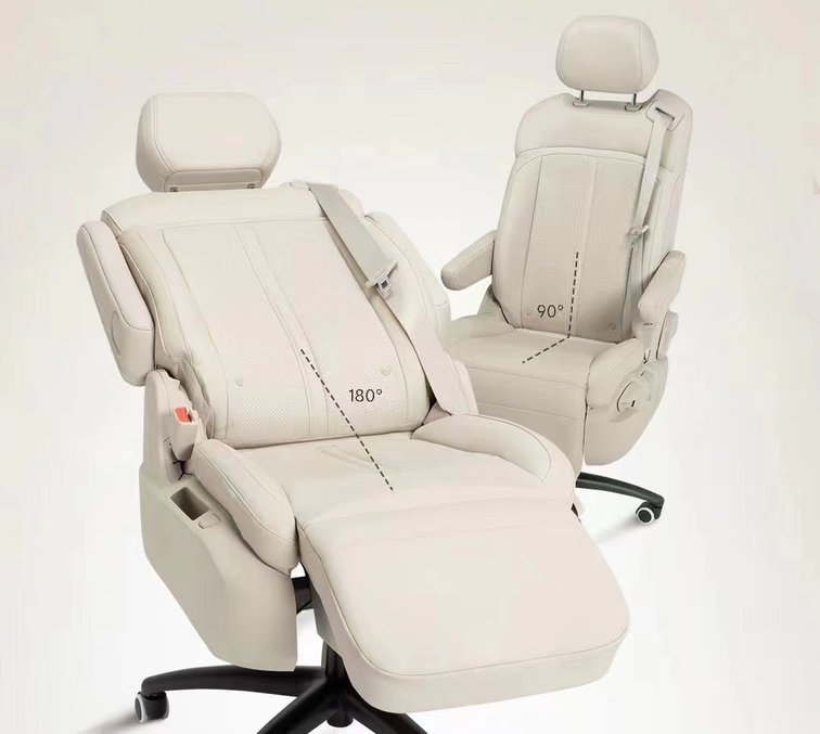 官方称,这是全球首款车规级头等舱座椅,从外形来看我们不难猜测其来自五菱凯捷的第二排,支持靠背角度调节,拥有独立的扶手以及腿拖,甚至还保留了安全带。