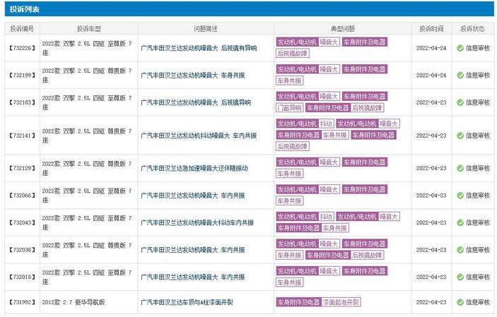 4月投诉暴增,广丰汉兰达发动机噪音大、车身共振问题引关注