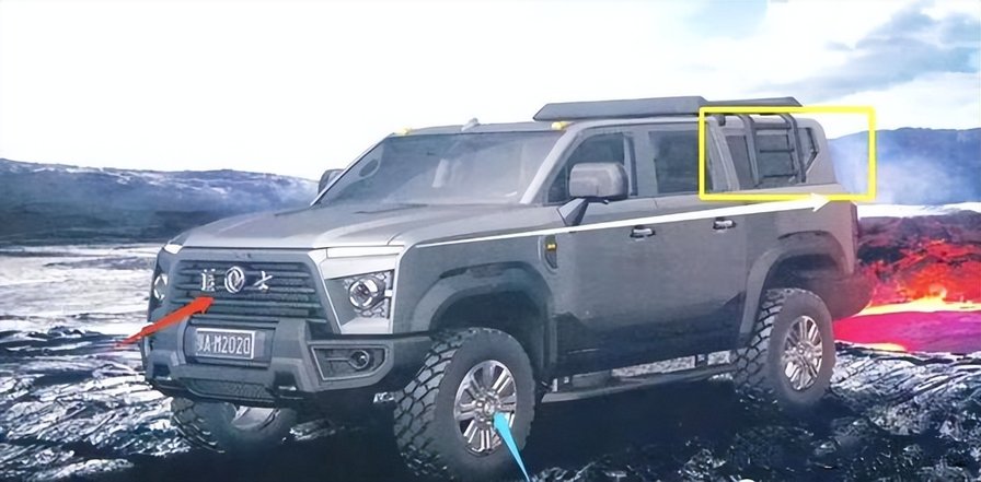 这款车之前就已经有过疑似的新车官图,车头不同于任何已有产品,梯形的进气格栅尺寸不大,中间是中文的猛士logo,头灯虽然是圆形的样式,但是并不大。整车绝对不是在追求时下的流行元素,而是更多在离地间隙、前后护杠以及侧面踏板和整车硬朗标配上下了功夫。据称,该车位于C柱和D柱的后部车顶与车身焊接还可以拆卸。