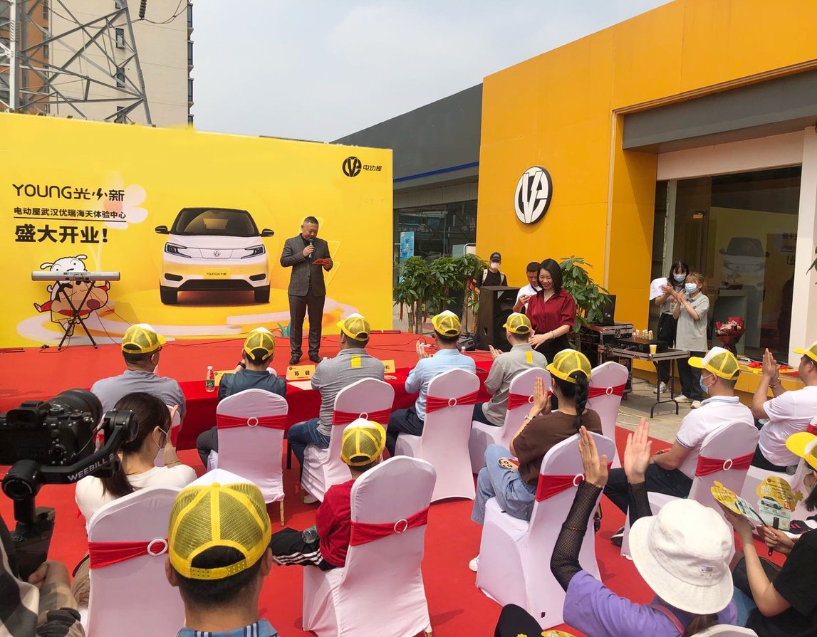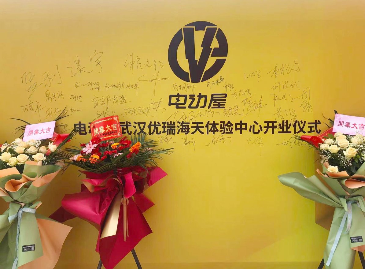 2022年5月8日上午10:18位于武汉市蔡甸区海天汽配城电动屋218厅的电动屋武汉优瑞海天体验中心隆重举办开业仪式,现场邀请了电动屋新能源汽车的厂家领导们、电动屋武汉优瑞海天体验中心的领导们,湖北省经销商老板们、电动屋新老客户以多家媒体参与了本次开业盛典。