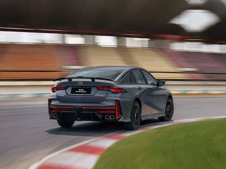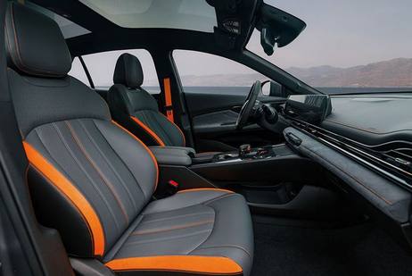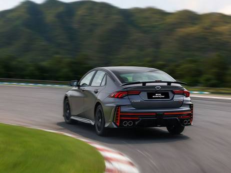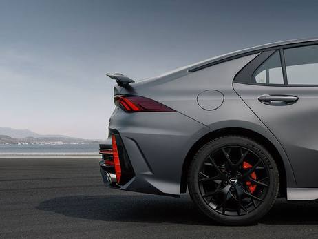 此外,新车在前脸、前翼子板、车尾等细节处加入了红色R标识。轮毂亮点十足,采用涂黑双层设计,内外两层不同形状的五辐轮毂设计感和层次感出众,加上内部橙色的刹车卡钳,赛车属性拉升明显。