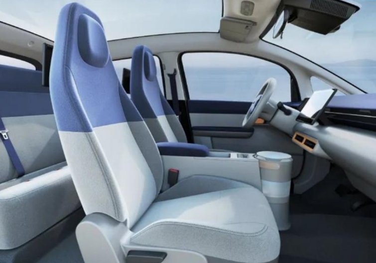 轻橙时代EEZI Vc的内饰设计简洁,整体为拼色设计,采用莫兰迪色系+经典的黑色系,配备以游戏手柄为灵感的双辐式方向盘、悬浮式液晶仪表和中控屏等设计。驾驶舱采用模块化设计,创新的console智能魔术桶,可以让用户按照自己的需求、喜好自由组合,更能实现多种功能,空气净化器、小冰箱等应有尽有。轻橙时代EEZI Vc采用双排五座的座椅布局,后排不支持4/6放倒。后排类沙发式座椅+全景天窗组合,提升了车内的乘坐体验。座椅采用软包环保布艺,为驾乘者提供柔软舒适的乘坐体验。