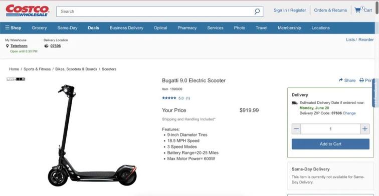 其实,这是今年年初布加迪发布的一款电动滑板车,是与美国公司Bytech International合作生产。日前,外媒发现该车型在美国最大的连锁会员量贩店Costco上线销售了,售价仅需919.99美元,并且该价格还贴心的包含了运费和包装!