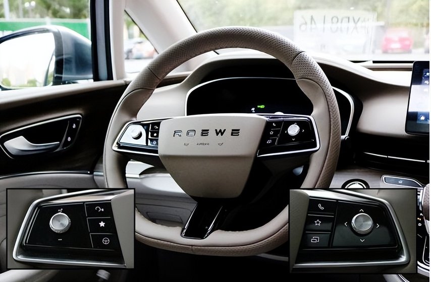 荣威iMAX8 EV采用了三幅式方向盘,整体造型小巧,整体用料均采用打孔设计,颇有新意。两侧功能键配备上钢琴烤漆按钮,很有特点。