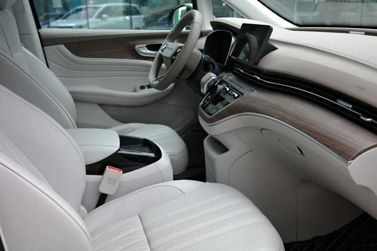 iMAX8 EV车内呈现出不错的家用气息和科技感。内饰采用了大面积的木纹饰板和软质包裹,S-Nappa真皮座椅比那些合成革触感更柔软,用料足。iMAX8 EV符合家用前排夫妻驾乘为主、二排老人和小孩乘坐为主的特点,把车主也照顾得很好。