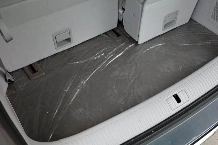 而基于第三排座椅可前后滑动、椅背可翻折的功能,后备箱拓展空间也比较理想。退至最后可以放大包,稍往前移则后备厢可以放儿童自行车或大号行李箱。尾箱侧壁还设置了点烟器接口并支持外放电。