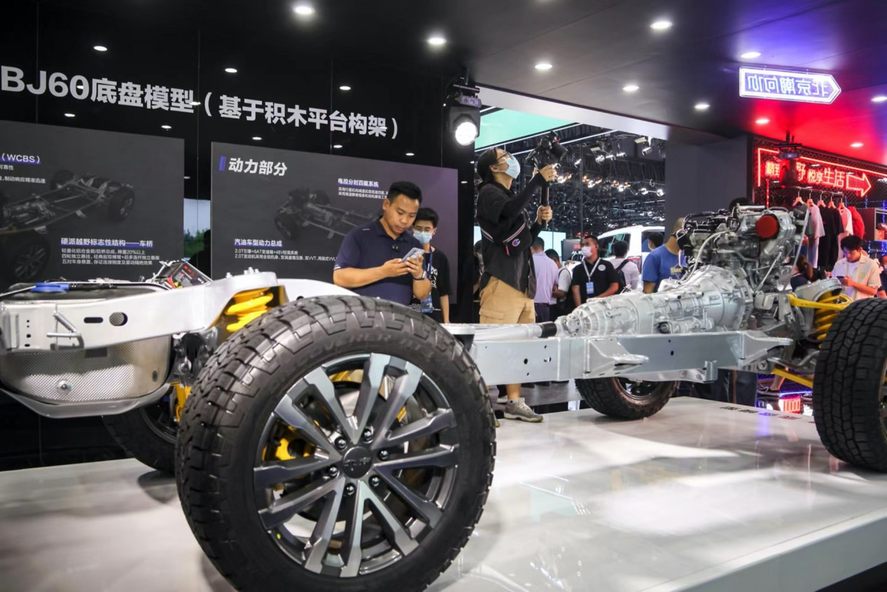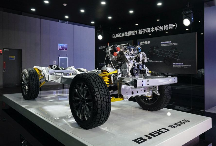 在北京越野展区一处展品前,挤满了人。此处,BJ60向公众亮了“底牌”——一个“非承载车身+四轮独悬”的底盘结构。很多铁粉边端详边议论,这让人不禁想起了至今余热未消的网上悬案——“BJ60究竟是不是100万内最舒适的越野SUV?”